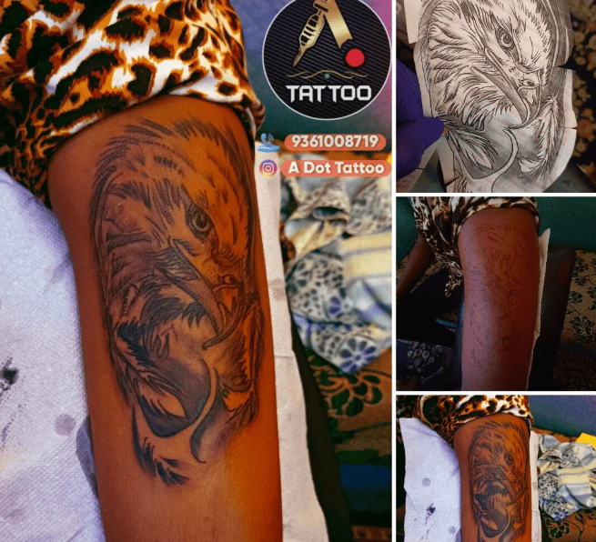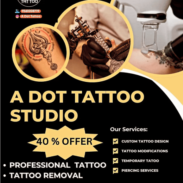 A Dot Tattoo Studio, Kotturpuram, is where we do everything related to tattoos under one roof. Our services at A Dot Tattoo Studio include new tattoo design, realism, portrait tattoos, cover-up tattoos, temporary tattoos, tattoo removal, body piercing, and piercing of ears, among others. We also undertake tattoo courses, especially for those who have an interest in learning the art itself. Our main aim is to do clean work, ensure safety, and produce artwork to carry with pride.