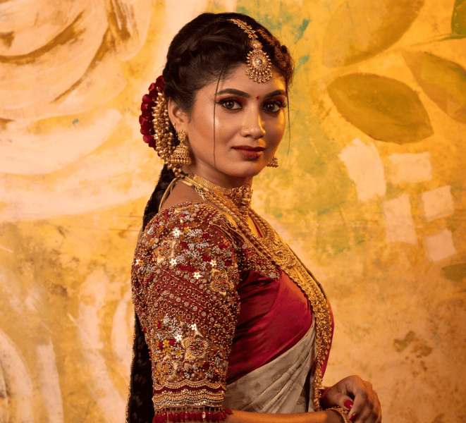 A2 Bridal Studio in Perungudi focuses on providing end-to-end beauty care with an added emphasis on brides and other events. We specialize in providing top-class beauty services such as makeup, bridal hairstyleing, saree pre-pleating, threading, waxing, facials, manicures, pedicures, hair coloring, keratin, smoothening treatments, hair straightening, and hair extensions. We are recognized and relied on by every bride in search of the best bridal studio in Perungudi Chennai. We also offer training via our beauty academies for those in search of the most reliable wedding makeup studio in Perungudi.