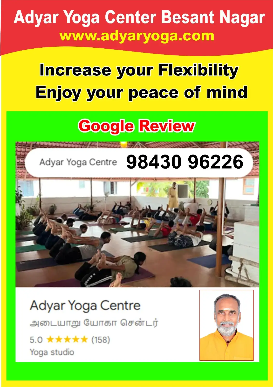 Adyar Yoga Center provides holistic wellness training designed to improve physical fitness and mental balance. Recognized for professional yoga classes in Besant Nagar, we offer weight reduction yoga, meditation sessions, therapeutic yoga practices, and massage therapy support. We focus on flexibility improvement, stress relief, and lifestyle wellness through guided training programs. Our center creates a calm and disciplined environment that supports health transformation and long-term well-being for all age groups.