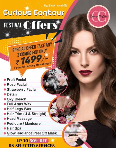 Curious Contour Beauty Parlour located at Thiruvanmiyur is a premier cosmetic shop that specializes in various beauty and wellness treatments. Our intensive range of services includes hair cutting, hairstyling, hair dye, facial, skincare, manicure, pedicure, and bridal makeup, covering all your beauty and wellness needs under one roof. Our experts are dedicated to enhancing your beauty without compromising on a relaxing and pampering experience. We are a trusted destination and a one-stop shop for all brides-to-be and beauty enthusiasts alike who seek a mix of sophistication and expertise.
