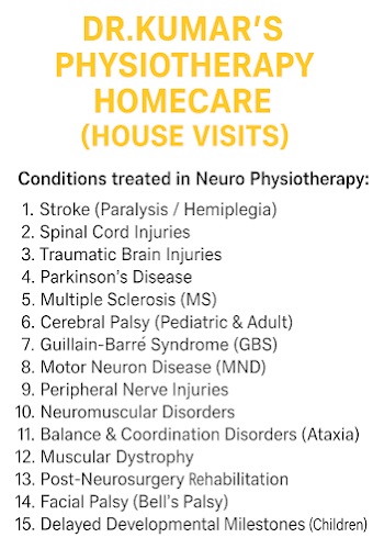 Dr. Kumar’s Physiotherapy Homecare provides rehabilitation and mobility recovery solutions designed for convenient patient care. Recognized for dependable physiotherapy service in Perambur, we offer diagnostics-based therapy, injury rehabilitation, pain management, and home physiotherapy care. We focus on movement restoration, muscle strengthening, and personalized treatment planning that supports faster recovery. Our homecare approach ensures professional physiotherapy support delivered comfortably within patients’ residences.