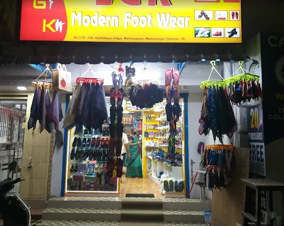 LGK Modern Foot Wear is an affordable shoe store located in Maduravoyal, Chennai, providing stylish and comfortable foot wear for ladies and gentlemen. At LGK Modern Foot Wear, you can find a variety of daily wear, casual, and modern foot wear in Chennai. Our goal is comfort, quality, and value for money. For a reliable foot wear shopping experience in Chennai, you can approach our shoe stores.