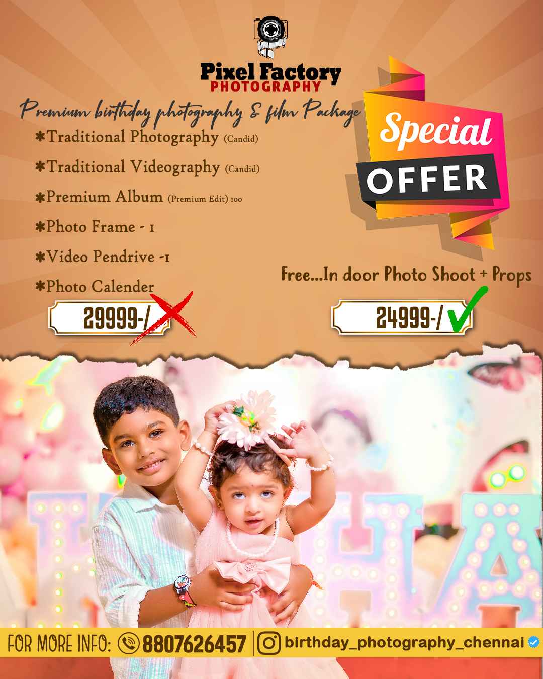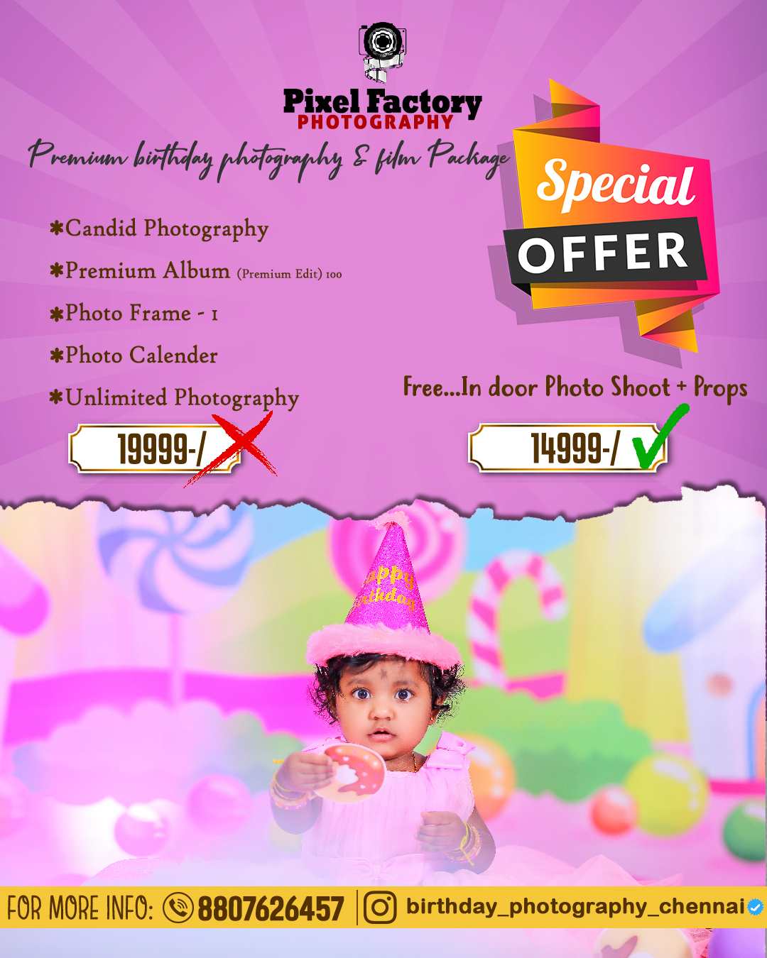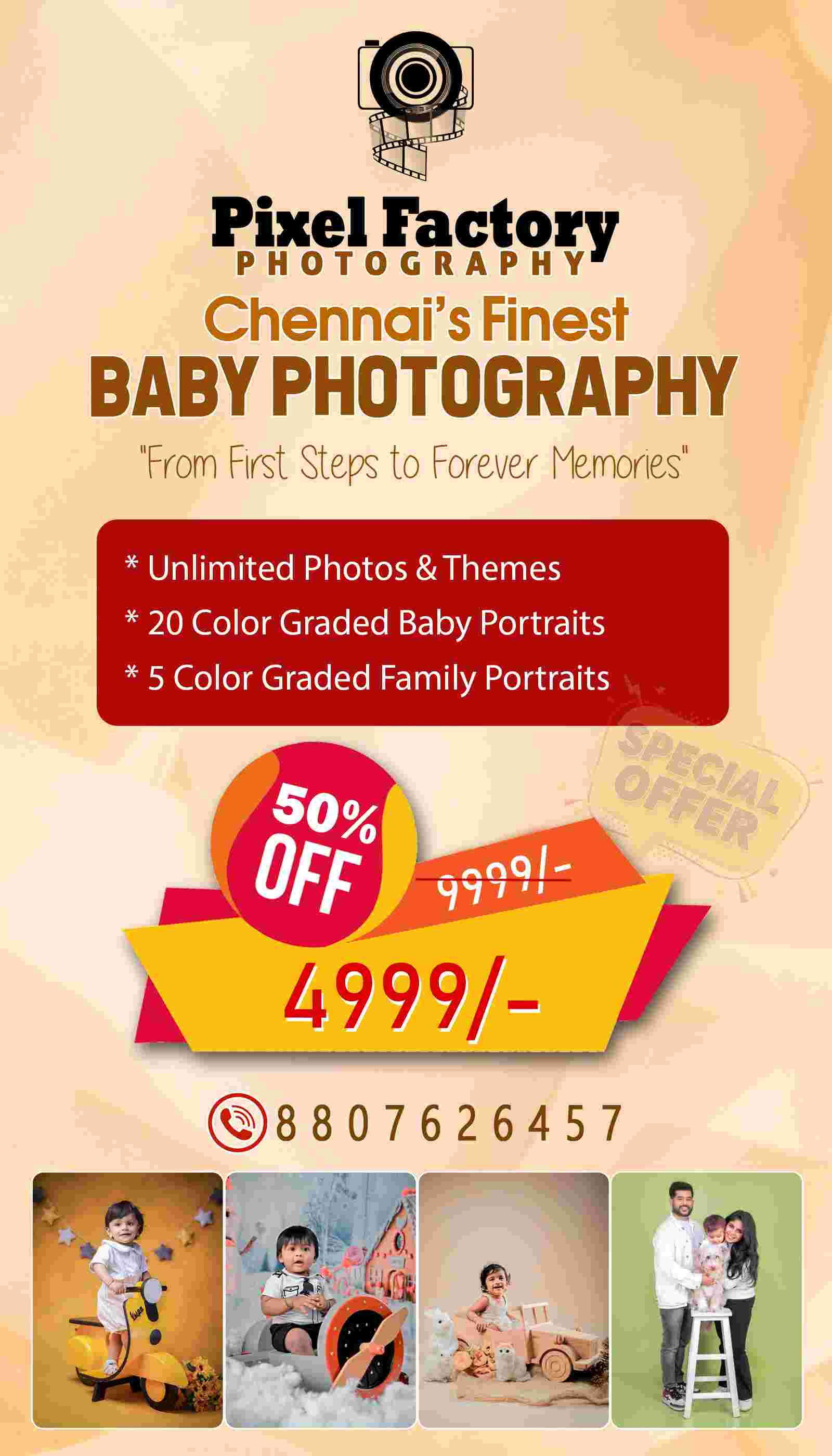 Pixel Factory Photography captures life’s most emotional moments through candid visual storytelling. As a leading photography studio in Virugambakkam, we provide wedding photography, maternity shoots, kids photography, and event coverage backed by professional expertise since 2017. We focus on natural expressions, cinematic framing, and premium editing techniques that transform real emotions into timeless photographic memories. Our work blends creativity with technical precision to preserve every celebration beautifully.