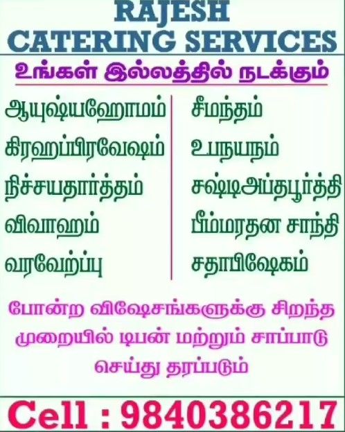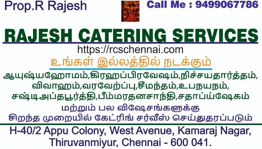 Rajesh Catering Services specializes in pure vegetarian culinary experiences crafted for traditional and modern celebrations. Recognized for reliable vegetarian catering services in Thiruvanmiyur, we provide A-to-Z catering solutions for weddings, receptions, engagements, corporate events, and family functions. We focus on authentic recipes, hygienic preparation, and balanced menu planning that satisfies diverse guest preferences. Our catering team ensures timely service, quality ingredients, and well-organized dining arrangements for memorable vegetarian feasts.