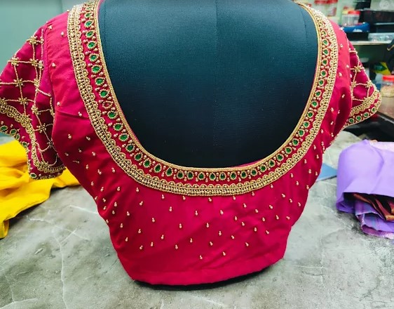 Shakthi Aari work is a reliable designer blouse shop in Mylapore, Chennai. We provide designer blouses, party wear, and bridal wear blouses, which are made with fine detailing. We specialize in handmade aari work blouses. We also give professional classes for learning aari work for starters and advanced level.