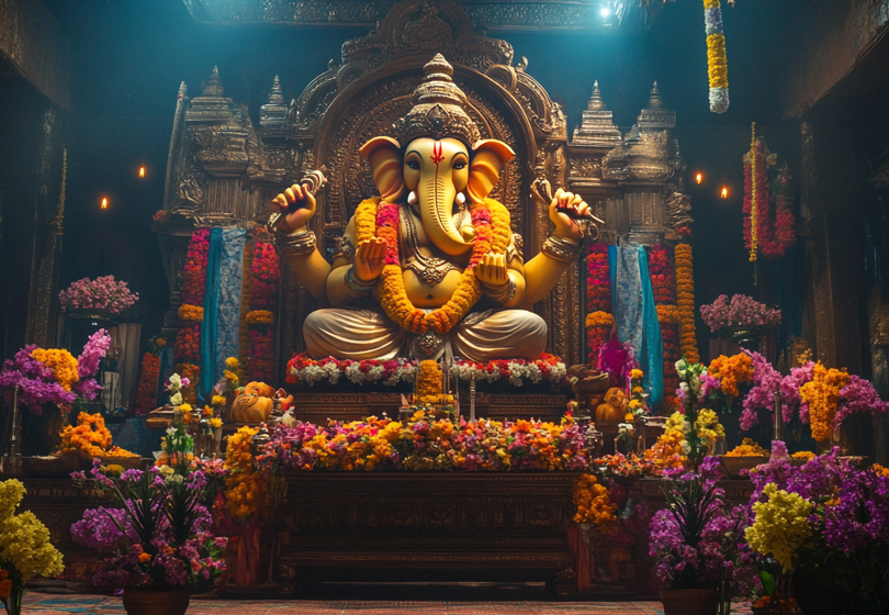 Shri Vinayagar, also known as Ganesha, is a prominent Hindu deity, widely revered as the remover of obstacles and the god of new beginnings, often depicted with an elephant head and four arms