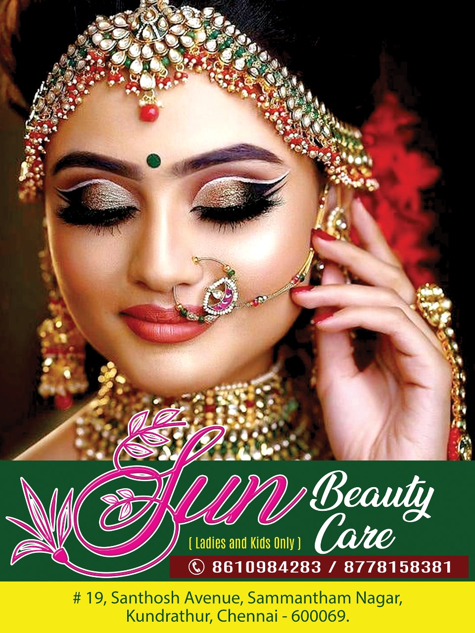 Sun Beauty Care is a trusted beauty haven to fulfill all your beauty and personal care needs. We are a ladies beauty parlour located in the posh area of Kodambakkam. We are specialized in all forms of hair care, skin care, facials, makeup, nails, and relaxing hair spa treatments. From a stylish haircut to a tan removal facial or oil hair spa, all our beauty treatments are completed to perfection. We aim to make all our clients feel refreshed, confident, and beautiful.