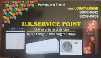 U.K. Service Point located at Ponniammanmedu is one of the best AC service center in Chennai, providing efficient and reliable AC repair, installation, and maintenance services. We offer repair and service for AC power issues, gas refill, compressor repair, water leakage, and cleaning, as well as washing machine repair and service.